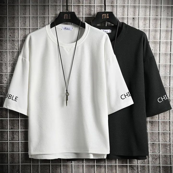 Spring Summer Simplicity Three-Quarter Sleeve Men T T-shirt Loose Half Sleeve ins Fashion Brand plus-Sized plus Size Short Sleeve T-shirt Top
