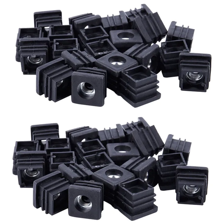 Square Tubing Pipe End Caps Insert Plugs M8 Thread 20X20mm 40Pcs Black