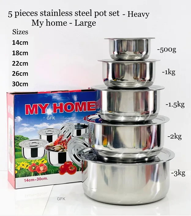 Stainless%20Steel%20Stock%20Pot%20/%20Food%20Container%205%20Pcs%20Set%20Steamer%20Pots%20with%20Lid%20Super%20Consist%20of%20Food%20Saver%20-%20Image%201