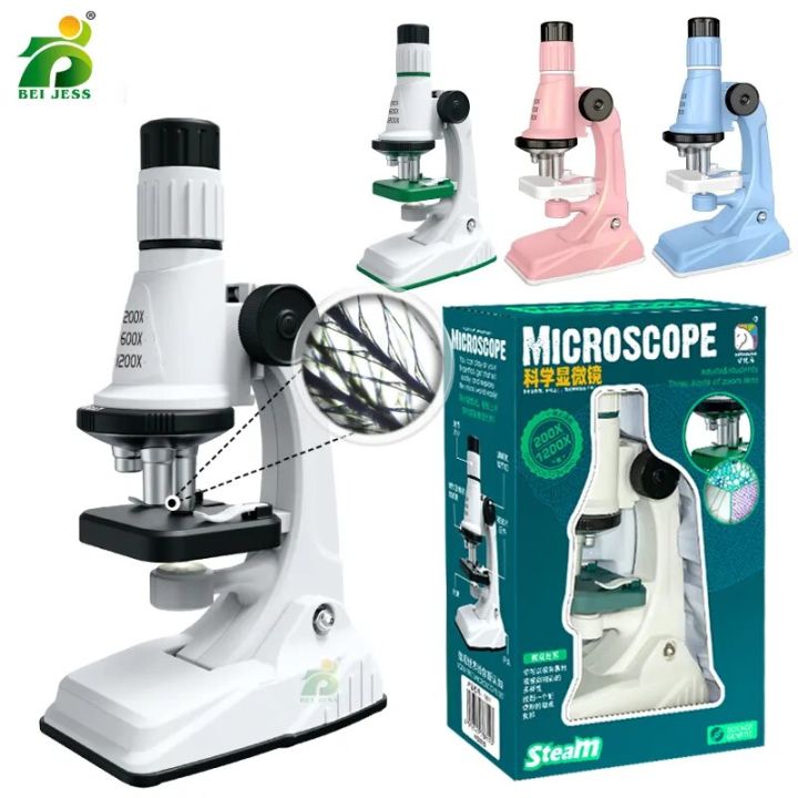 STEM Toys science toys Children Science Biological 200x 600x 1200x Pocket Microscope Set Lab With LED Refined Instruments Montessori Education Toy
