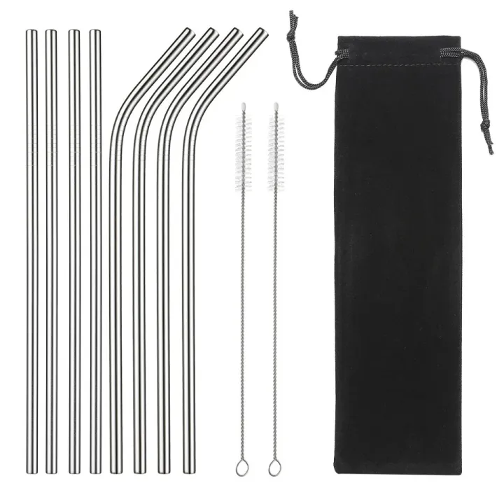 straw 304 Stainless Steel Straw Reusable Metal Drinking Straws Set Wholesale With Cleaning Brush Party Bar Accessory Eco Friendly NewParty Supplies