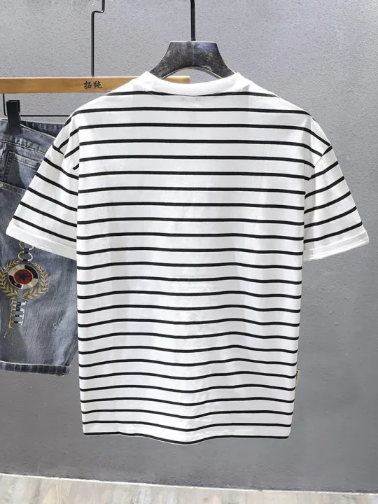 Striped%20Short-SleeveTT-shirt%20Men's2023Summer%20New%20High-End%20Men's%20Elbow-Sleeved%20Top%20T-shirt%20Fashion%20Tops%20Youth%20Men's%20Clothing%20-%20Image%201