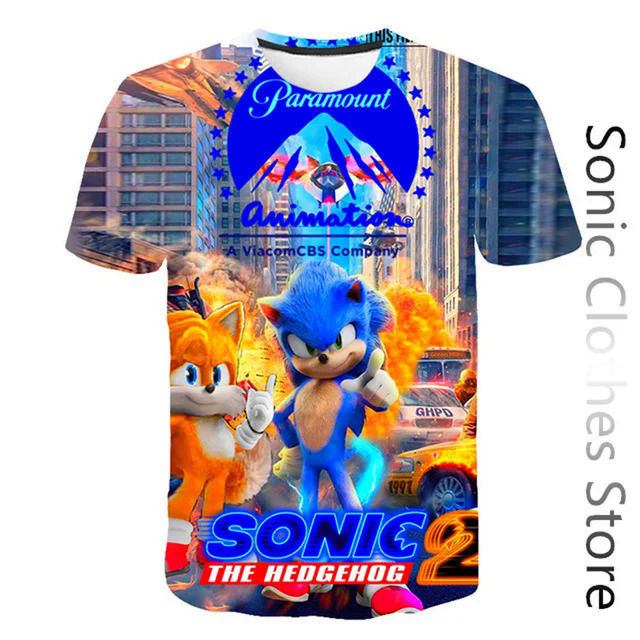 Super Sonic tshirt kids clothes boys T-shirts summer 2-14T baby girls clothing 3D print tees children Sonic the Hedgehog T shirt