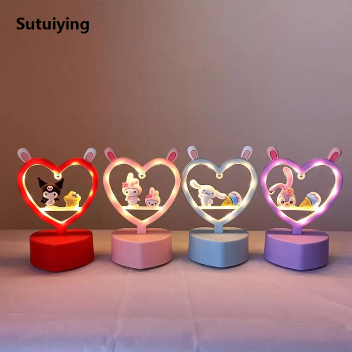 Sutuiying Kawaii Sanrio Night Light Cinnamoroll My Melody Cute Cartoon Kuromi Original KT Cat Children Glow Table Lamp Creative Toys for Girl gift