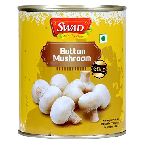 SWAD Premium Canned Button Mushrooms in Brine | Protein-Rich & High in Fiber | Gluten-Free & Low Calorie | Farm Fresh, Vegan & Ready-to-Eat Mushrooms | 800g (Pack of 1) (FROM INDIA)SAB
