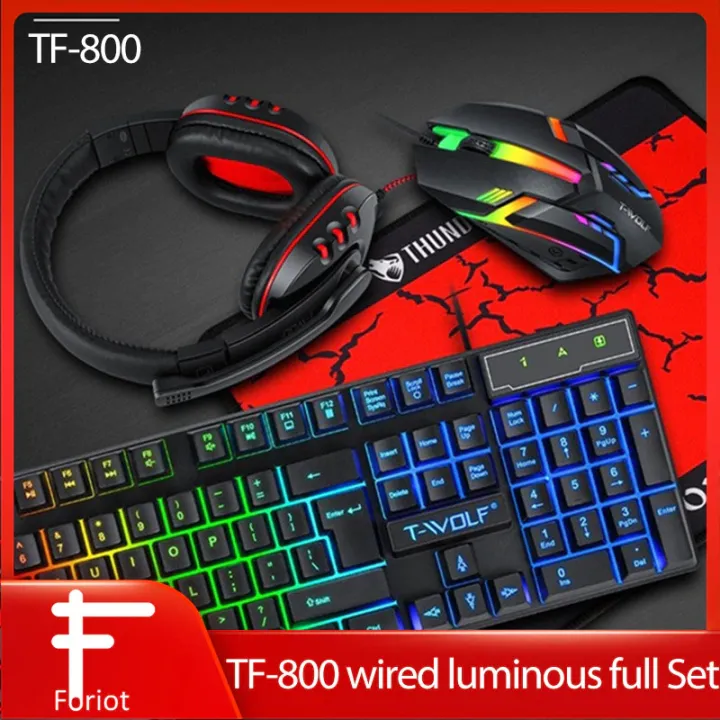 T-WOLF TF-800 4 in 1 Combo Whole set RGB Back Light Wired Headset mouse pad Keyboard and Mouse Gaming Set