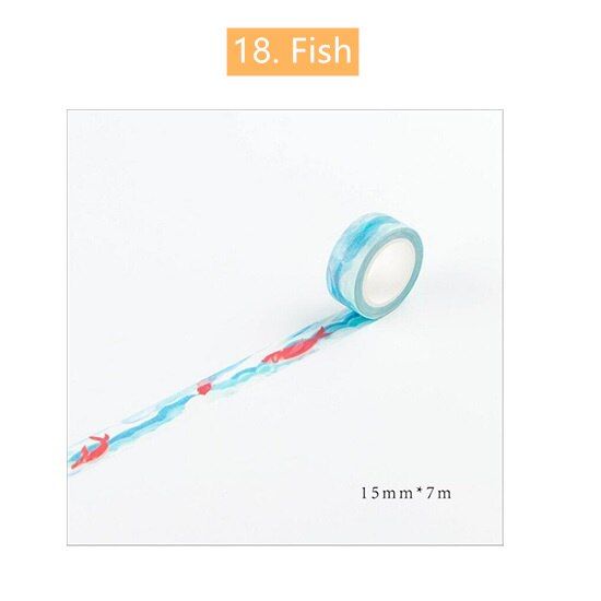 Tape Cute Travel 15Mm H6347 Decorative Series Grid Memo Washi Er Stickers Stationery Paper Diary Tape Adhesive Masking(Fish)