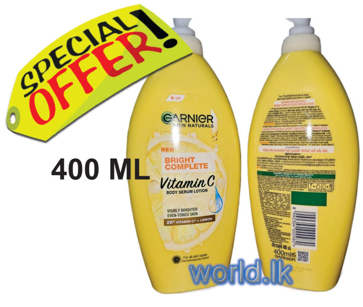 Thailand GARNIER VITAMIN C Body 400 Ml Sun Block Lotion UVA / UVB Bright Complete 2x Lemon Gbvc Reduce the Dark Spots and Even Out Skin Tone