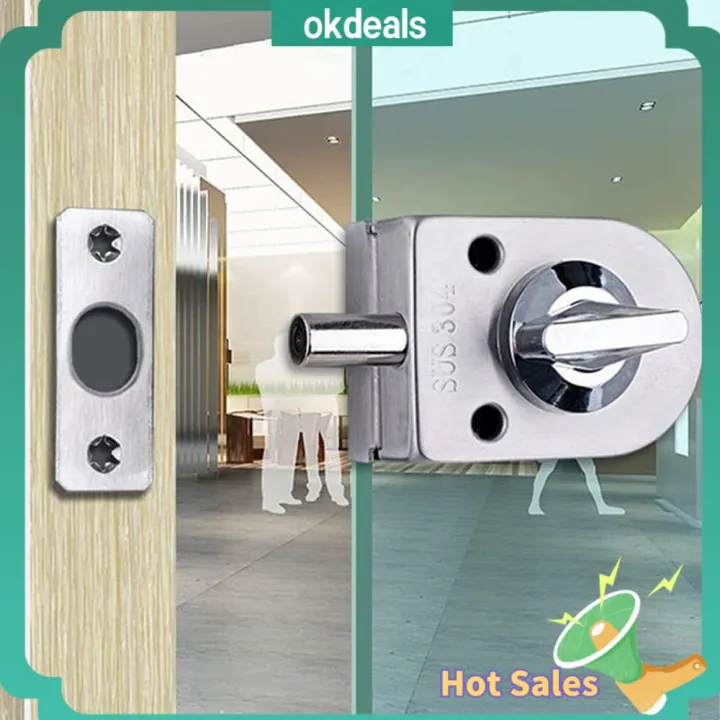 【ThinkWay】1x1 x Glass Door Lock 304 Stainless Steel Knob Sliding Gate Floor Latch Single Bolt Keyless Anti-Theft Security Lock for Bathroom Office Toilet Shop