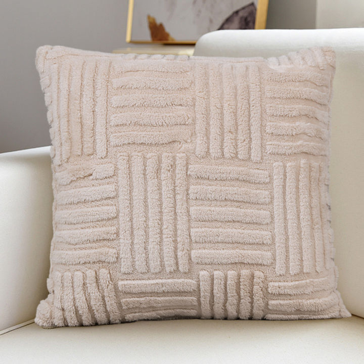 Throw Pillow Geometric Solid Color Throw Pillow Cover Simple And Atmospheric Jacquard Double Sided Plush Pillow Cushion 1Pcs