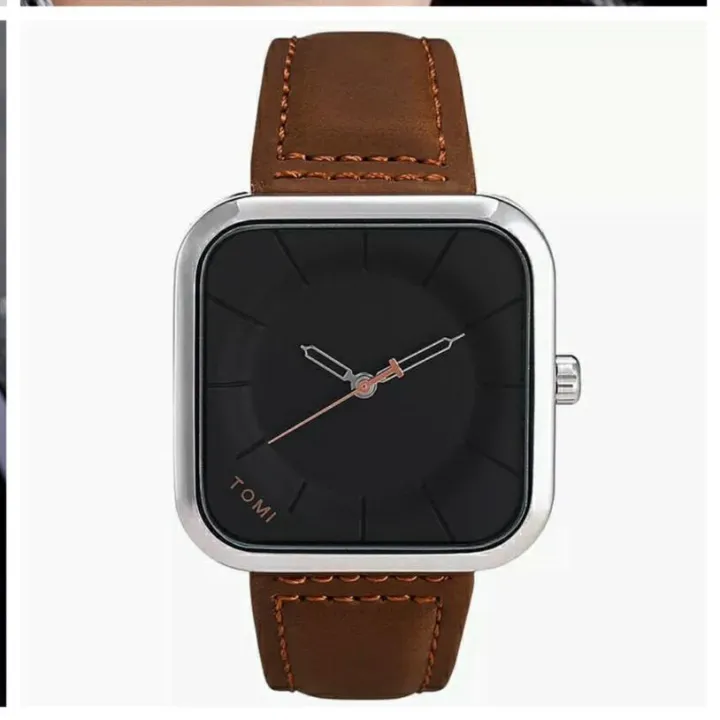 TOMI means gents brown leather strap square shape watch | HP595 |