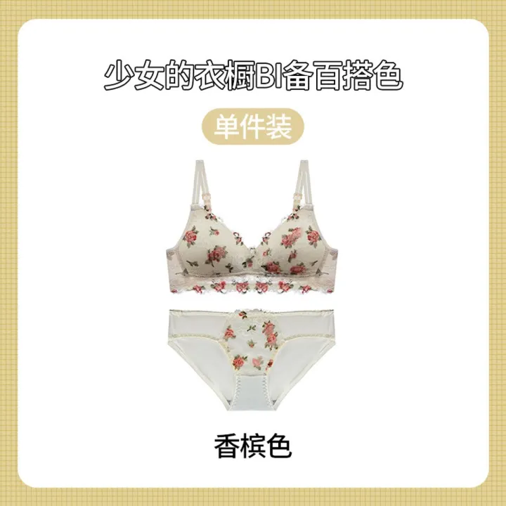 TZ%20Japanese%20Style%20Sweet%20Lace%20Vintage%20Rose%20Flower%20Underwear%20Women's%20Thin%20Push-Up%20No-Rings%20Comfortable%20Breathable%20Bra%20Set%20-%20Image%201