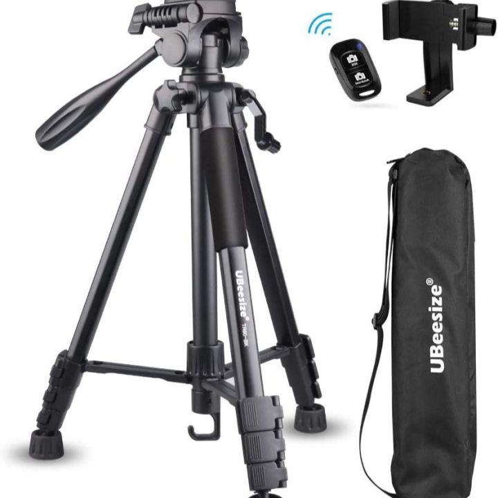 UBeesize 60-inch Camera Tripod, 5kg/11lb Load TR60 Load Portable Lightweight Aluminum Travel Tripod with Carry Bag & Bluetooth Remote, for DSLR SLR Cameras Compatible with iPhone & Android Phone