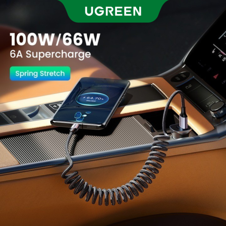 UGREEN 100W 6A Spring USB Type C Cable for Car Styling Storage Flexible 2A Charging Cable USB C SCP for Huawei Samsung Xiaomi redmi Type-C Device