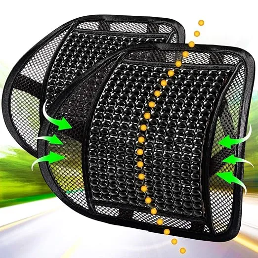 umbar Mesh Back Brace Support Office Home Car Seat Chair Ventilate Cool Cushion Pad with Massage | Breathable, Massage Beads for Ultimate Comfort, Lumbar Support, Back Support with Wooden Beads Provide Massage Feature, Breathable Back Support Cushion
