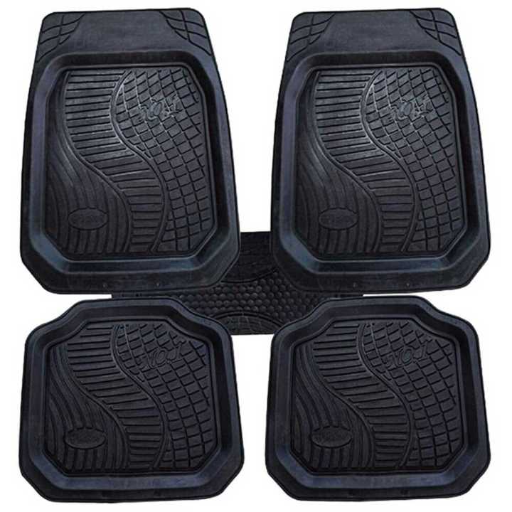 Universal Fit Rubber Bucket Car Carpet 5 Pcs Black Color