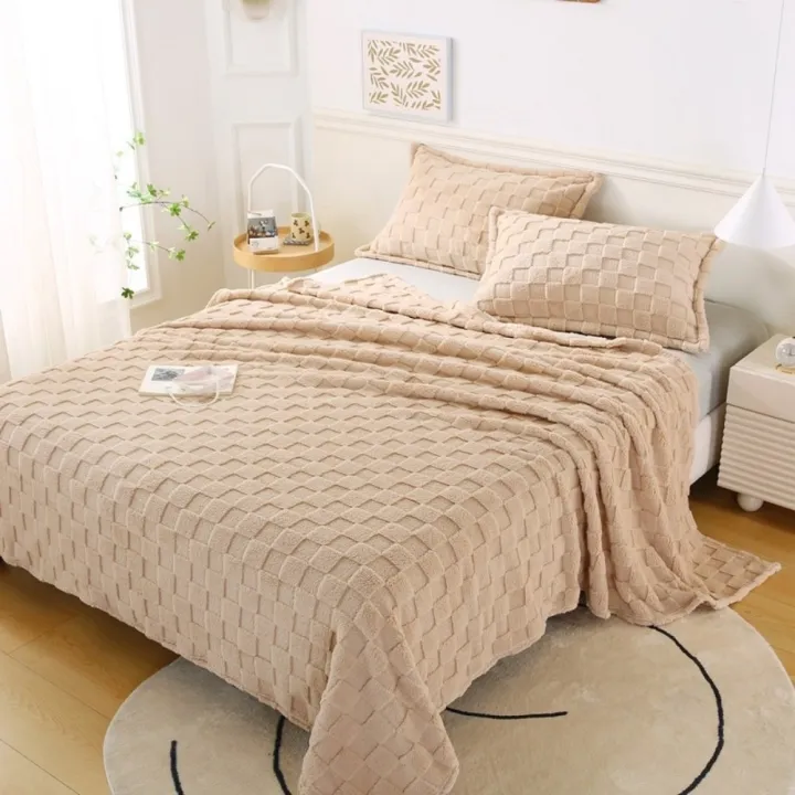 Universal Thick Warm Fleece Blanket Solid Color Plush Soft Sofa Blanket Square Texture Comfortable Bed Blanket All Season