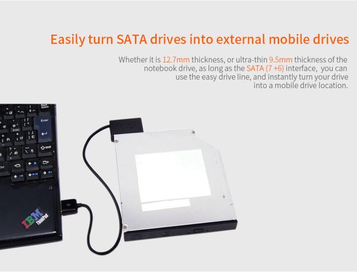 USB%203.0%20to%207+6%2013Pin%20Slimline%20SATA%20Laptop%20CD/DVD%20ROM%20Optical%20Drive%20Adapter%20Cable%20-%20Image%203