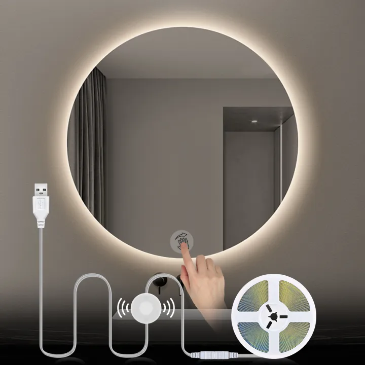 USB 5V COB LED Strip Makeup Vanity Light Penetrable Glass Touch Dimmer DIY Bathroom Dressing Table Mirror BackLight Lighting
