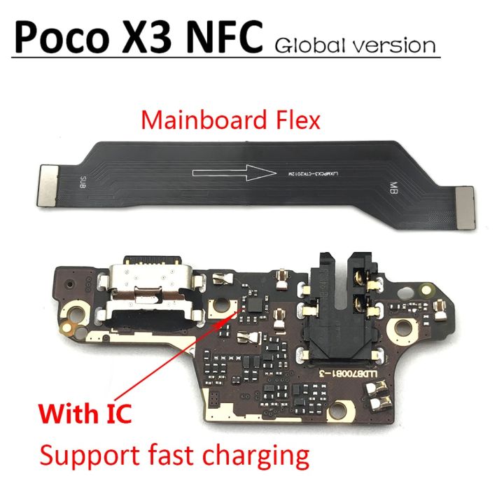 USB Board Charger Charging Dock Port Connector Flex Cable For Xiaomi POCO X3 NFC Global Version Mainboard Main Board Flex