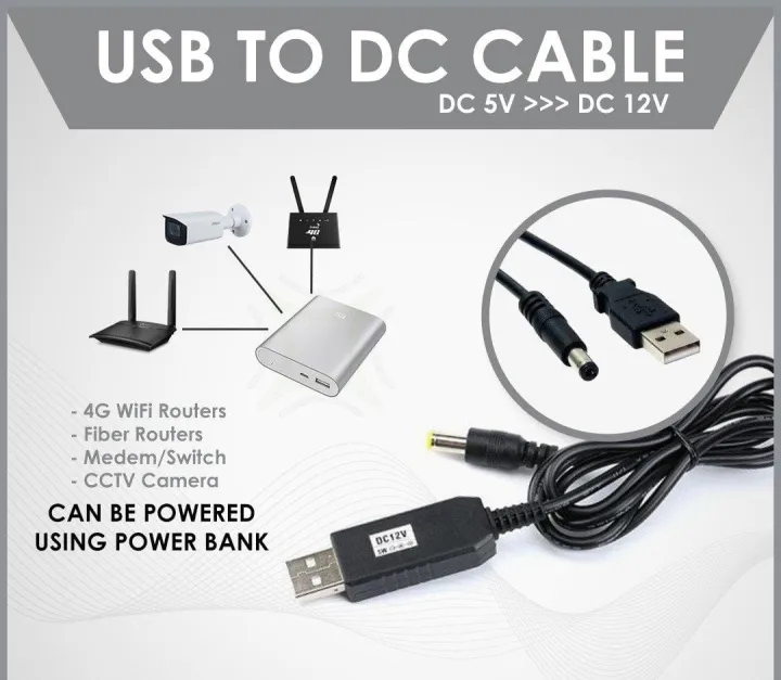 USB DC CABLE 5v to 12v boosting - Power Bank To Router for uniterrupted WiFi