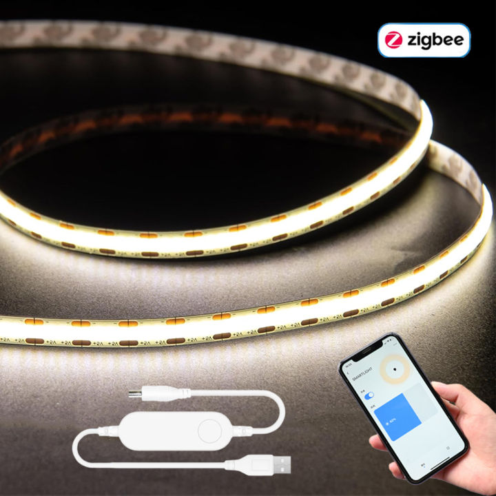 USB Zigbee COB LED Strip 5V 1m 2m 3m Warm Natural White TV BackLighting Cabinet Lighting Room Decor for Alexa/Google Assistant