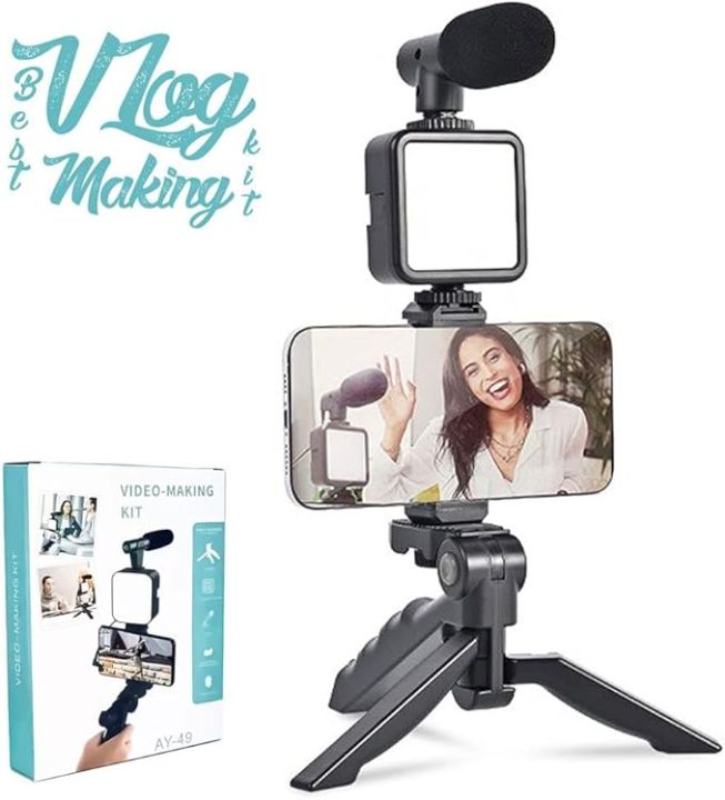 Video Making Vlog Gimble / Tripod Kit AY-49 With Microphone and And Light For Live Broadcast | YouTube | TikTok | Online Meeting