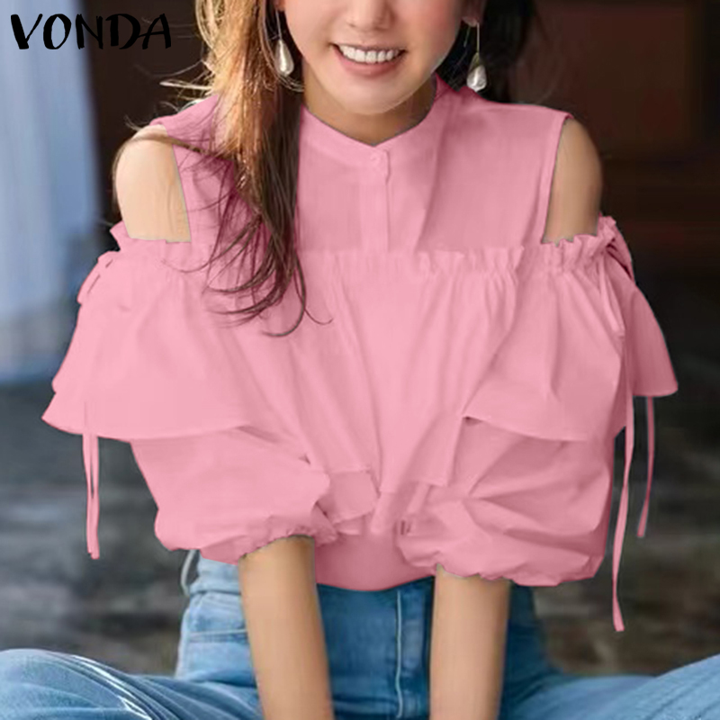 VONDA Women Korean Fashion Off Shoulder Long Sleeve Blouse (Korean Causal)