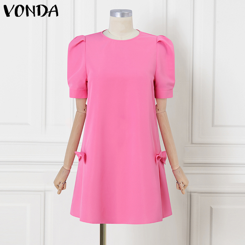 VONDA%20Women's%20Girly%20Style%20Short%20Sleeve%20A-Line%20Dresses%20Bowknot%20Crew%20Neck%20Mini%20Dress%20(Korean%20Floral)%20#4%20-%20Image%209