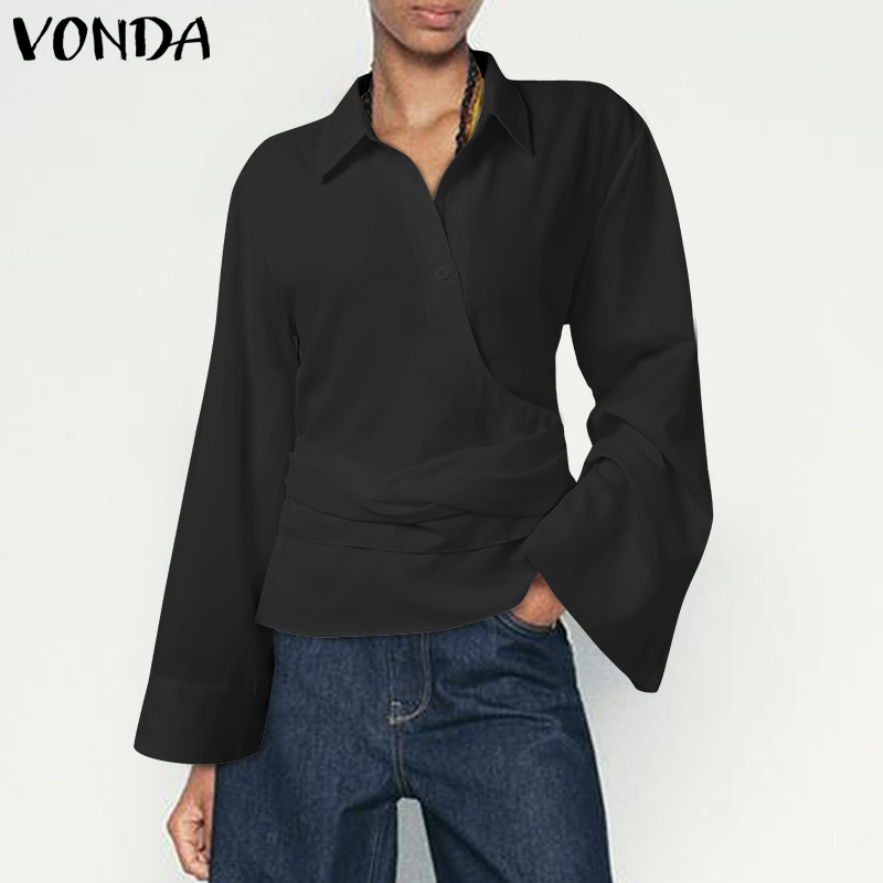 VONDA%20Womens%20Leisure%20Commute%20Lapel%20Bell%20Long%20Sleeve%20Shirts%20Slanted%20Placket%20Solid%20Blouses%20(Korean%20Causal)%20-%20Image%201