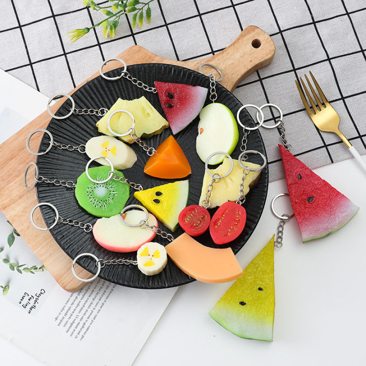 Watermelon Fruit Pendant Key Chains For Friend Gift Unique Creative Simulation Watermelon Carrot Bag Car Box Key Ring