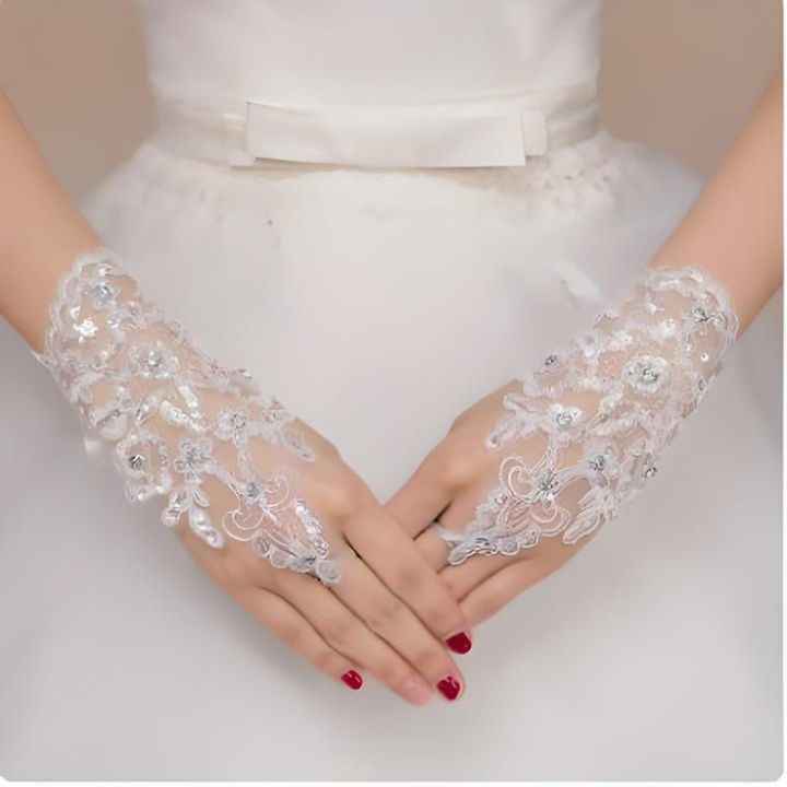 Wedding%20Bridal%20Lace%20Gloves%20Elegant%20Short%20White%20Lace%20Rhinestone%20Women%E2%80%99s%20Fingerless%20Gloves%20Wedding%20Accessories%20100%25%20Polyester%20and%20Rhinestone%20-%20Image%209