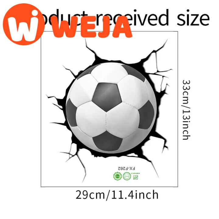 【WEJA】3D Broken Wall Football Stickers Home Decoration For Boy Baby Bedroom Decor Pvc Livingroom S-adhesive Wallpaper Wallart Mural