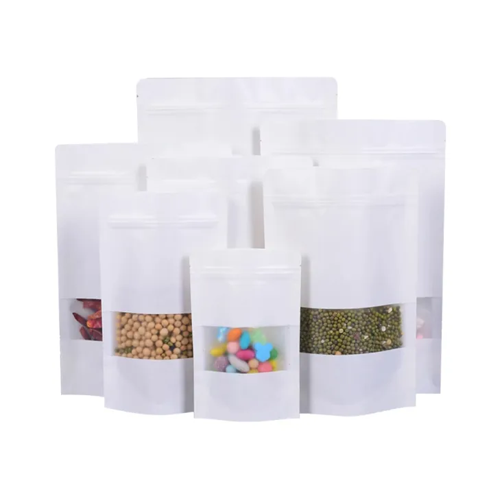 White Ziplock Window Pouch Bags 100g 20x12cm