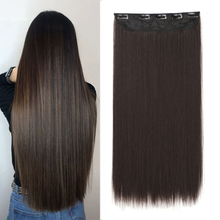 WIGSIN 60cm Synthetic Long Straight Clip In One Piece Hair Extension 5 Clips Brown Black Heat Resistant Fake Hair for Women