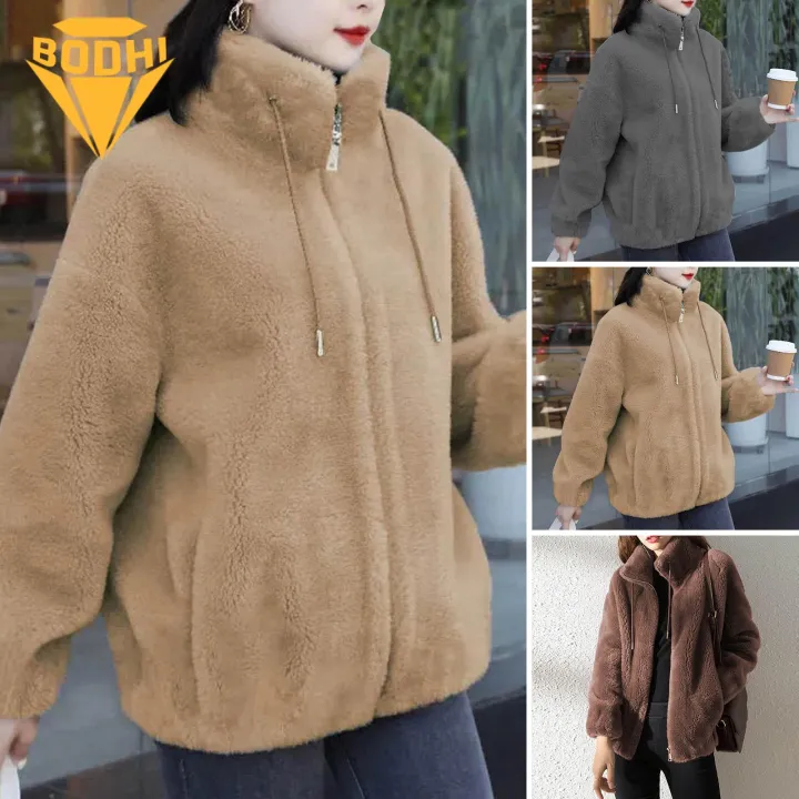 Winter Fleece Zipper Coat Stylish Winter Coat with Plush Warmth Zipper Closure Perfect for Southeast Asian Buyers Ladies Solid Color Outwear