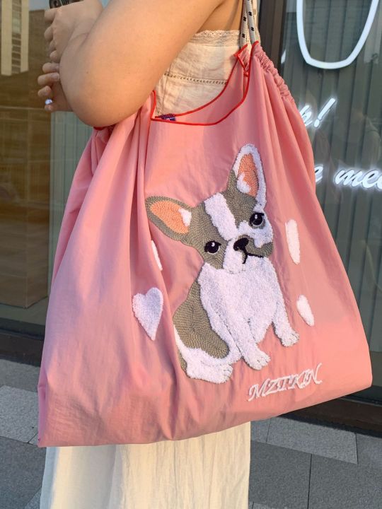 Women's Embroidered Shopping Bag Handbag Oxford Fabric Bag Large Capacity Nylon Crossbody Foldable Portable Shoulder Bag