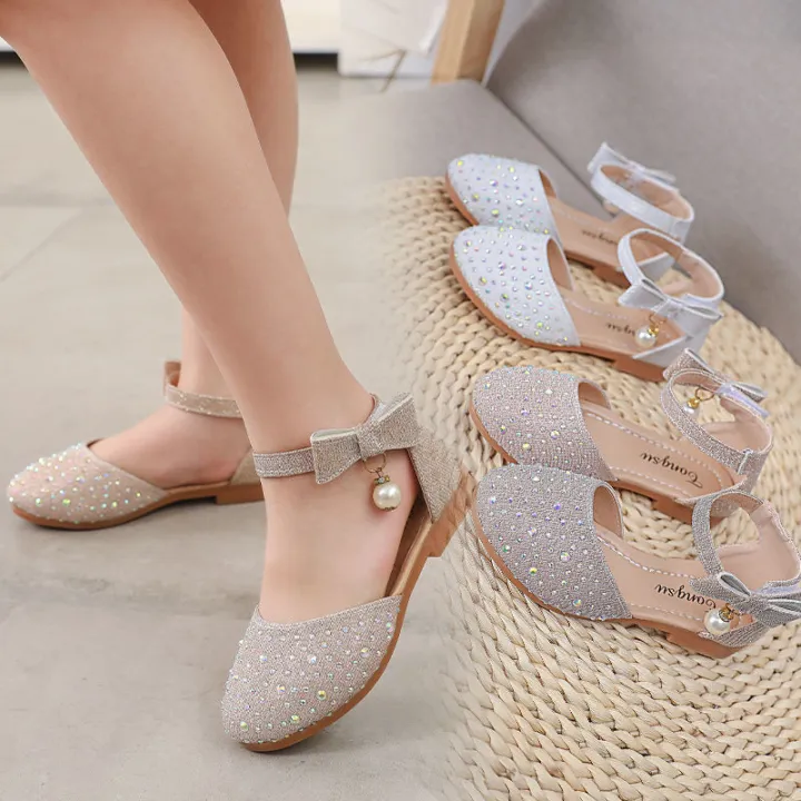 Women's Shoes2023Spring and Summer New Princess Shoes Girls' Sandals Middle and Big Children's Closed Toe Fashion Children's Crystal Shoes Soft Bottom