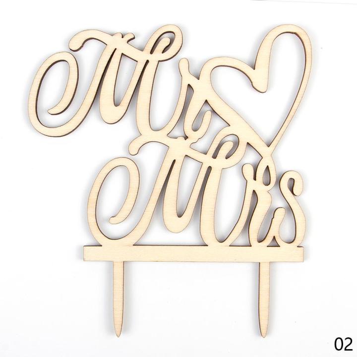 Wooden Cake Topper Love Mr&Mrs Letters Cake Wedding Toppers Engagement Cake Decoration Supplies