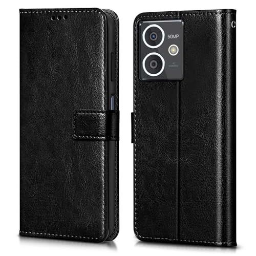 WOW IMAGINE Shock Proof Flip Cover Back Case Cover for HMD Crest 5G (Flexible | Leather Finish | Card Pockets Wallet & Stand | Black) (FROM INDIA FAAZ)