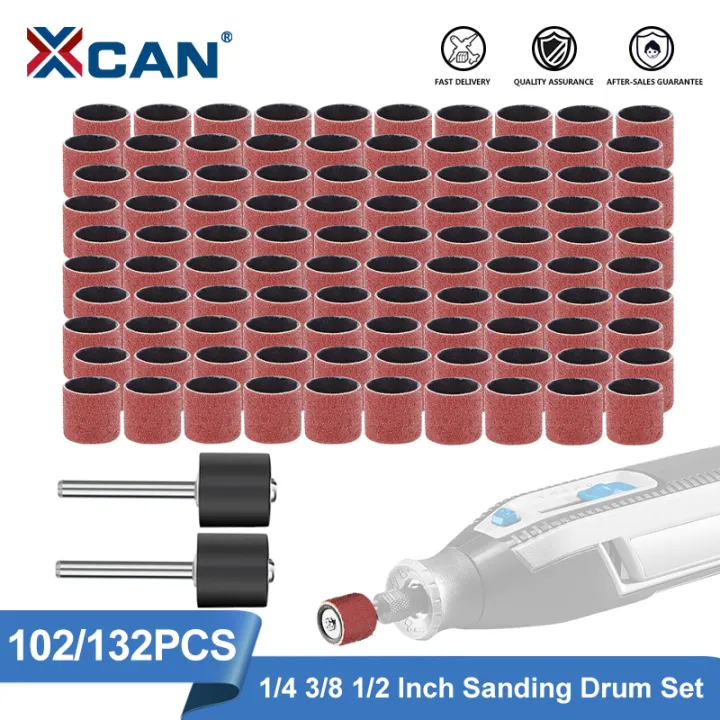 XCAN 102/132pcs 1/4 3/8 1/2 Inch Sanding Drum Set With Sanding Mandrels Sanding Bands For Nail Dremel Accessories