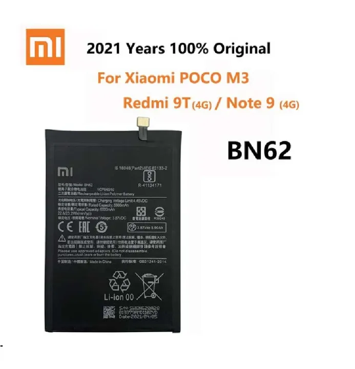 Xiaomi Poco M3 Battery Replacement 6000 Mah Battery BN 62 BN-62 BN62 Battery 6000mAh Phone Battery For Xiaomi POCO M3 Redmi Note 9 4G 9T