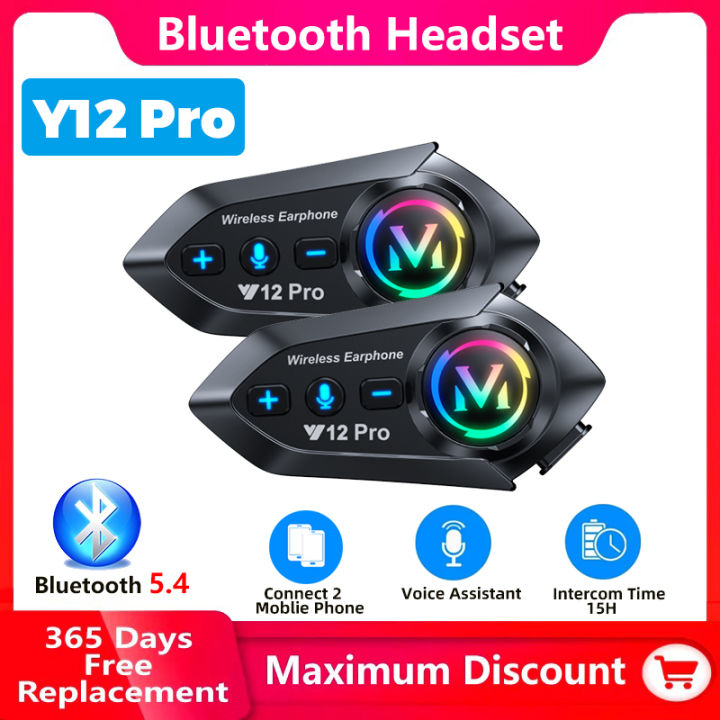 Y12 Pro Motorcycle Helmet Bluetooth Headset Intercom Distance 500M IP56 Dust And Waterproof Voice Assistant Mixing Music Sharing