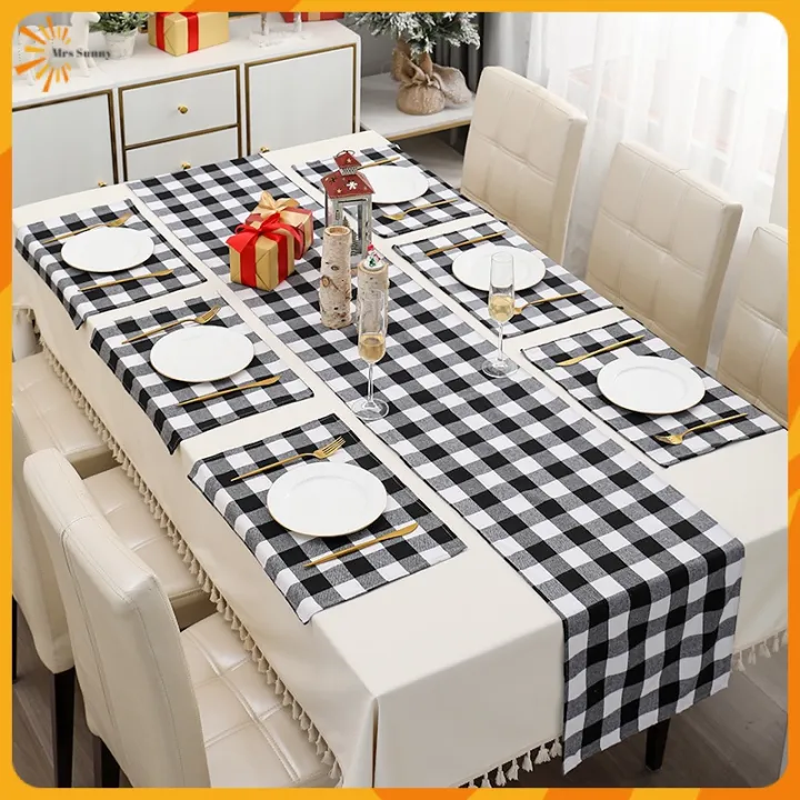 Yarn-Dyed Polyester Cotton Holiday Red Black Plaid Table Runner Tablecloth Home Decoration Christmas