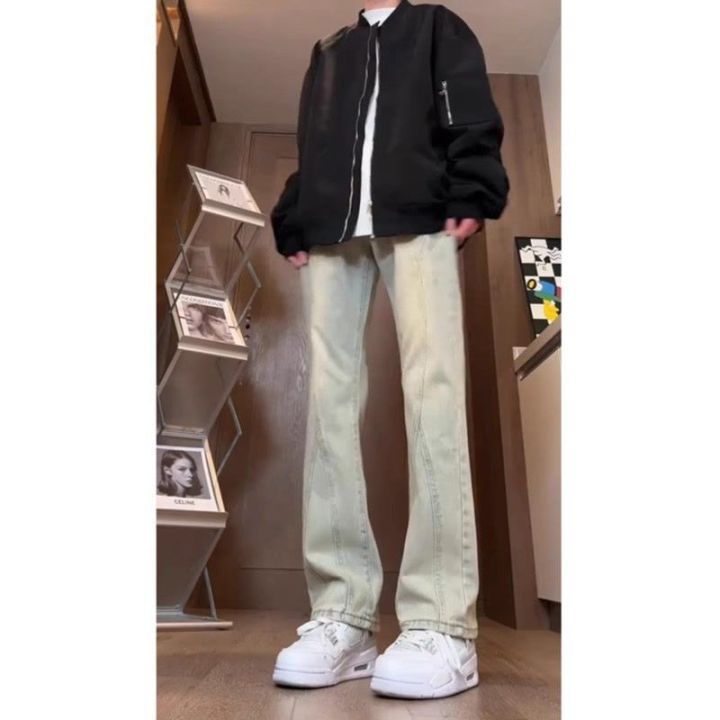 Yellow%20Mud%20Color%20Stitching%20Extra%20Long%20Jeans%20Men's%20Tall%20American%20Retro%20Pants%20ootd%20Wear%20High-End%20Bootcut%20Trousers%20-%20Image%201