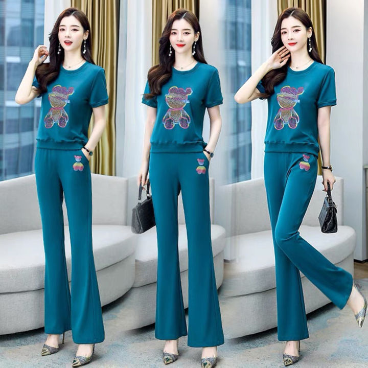 Yfashion%202%20Pcs%20Women%20Outfits%20Round%20Collar%20Short%20Sleeve%20T-shirt%20Flared%20Pants%20Fashion%20Casual%20Sports%20Sweater%20Suit%20color%20-%20Image%201