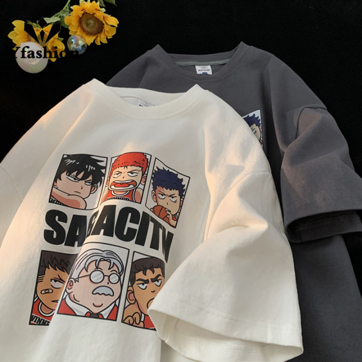 Yfashion Men and Women's Summer T-shirt - Oversized Cartoon Anime Pattern Street Hip-hop Trendy Short Sleeve Tee Tops
