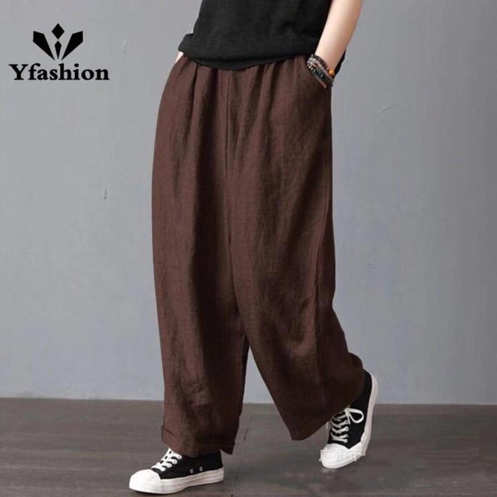 Yfashion%20Women%20Cotton%20Loose%20Wide-leg%20Pants%20Casual%20Cotton%20Linen%20Simple%20Solid%20Color%20Trousers%20Mid-waist%20Large%20Size%20Thin%20Pants%20-%20Image%201