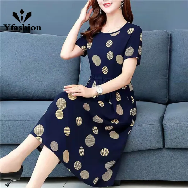 Yfashion%20Women%20Cotton%20Summer%20Short%20Sleeves%20Dress%20Elegant%20Stylish%20Printing%20Round%20Neck%20Midi%20Skirt%20Large%20Size%20Loose%20Casual%20Dress%20-%20Image%201