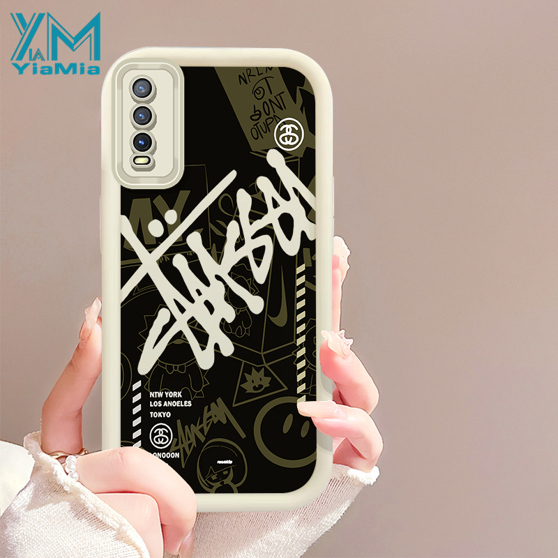 YiaMia Fashion Case For VIVO Y20 Y20S Y20i Y20A Y12S Y12A Y3S V2026 V2027 V2028 V2029 V2032 V2033 V2042 V2043 Y75 Y55 T1 S1 Pro Trendy Brand TPU Soft Silicone Shockproof Protective Phone Back Cover